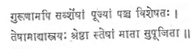 "Of all superiors, fiveare especially to be worshipped. Of the five again (namely, father, mother, spiritual preceptor the eldest brother, and he to whom you owe your livelihood), the first three are the greatest. Of them again it is your mother to whom the greatest reverence is' due."