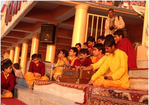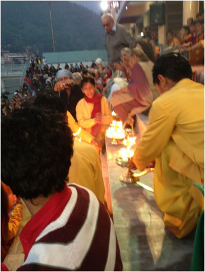 The sunset Ganga Aarti at Parmarth Niketan draws between hundreds and thousands of visitors each day from all cultures, all languages, all religions and all walks of life. Regardless of one's religion or ability to understand Hindi or Sanskrit, the power of the Aarti is universal. Ganga Aarti transcends the borders and boundaries of language and culture, diving straight into one's heart, carrying one to Heaven.