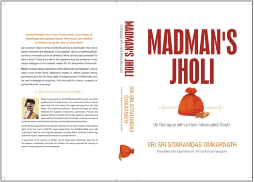 The title of this book Madman’s Jholi is an amusing one. It raises the obvious questions: who is the madman? What’s in his Jholi (bag)? Sri Sri Sitaramdas Omkarnath used to carry a Jholi (bag). On one occasion around 1923, when he visited RamdayalMajumdar, a notable disciple of LahiriMahasaya, the latter said: “Tomarkheparjhulitejaachheamaidao” (give me whatever is there in that madman’s bag of yours). A bouquet of most wonderful essays on spirituality was the result of that request. While KheparJhuli got published in Bengali only on Janmashthami, in August 1951, some of the essays started getting published as early as 1923 in a magazine called ‘Utsav’