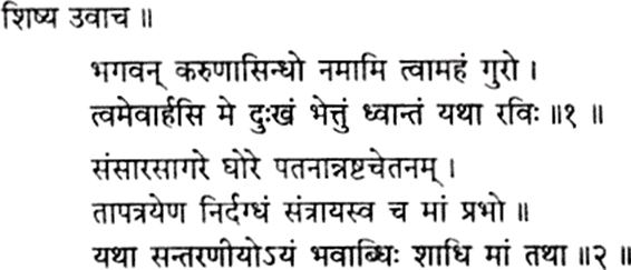 The disciple said: O Merciful Master! I bow to thee. I have fallen into the dreadful ocean of birth and death. I am afflicted with the three kinds of Taapas. Save me, O Lord. Teach me, how I should cross this ocean of Samsara.